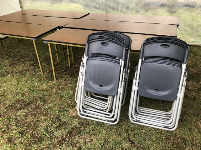 まず、物品を所定の位置まで運び、テーブルや椅子を並べていきます。